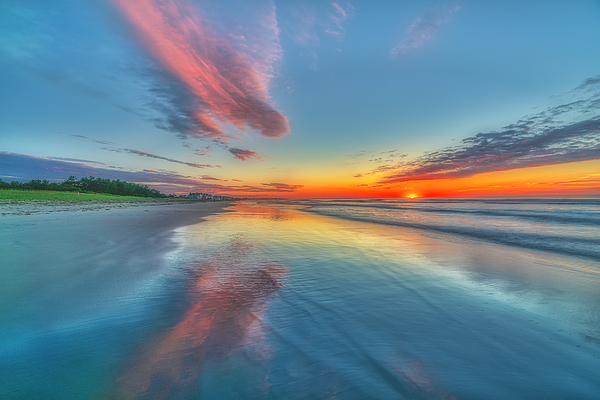 The sun was just cresting above the horizon at Footbridge Beach in Ogunquit, Maine.
